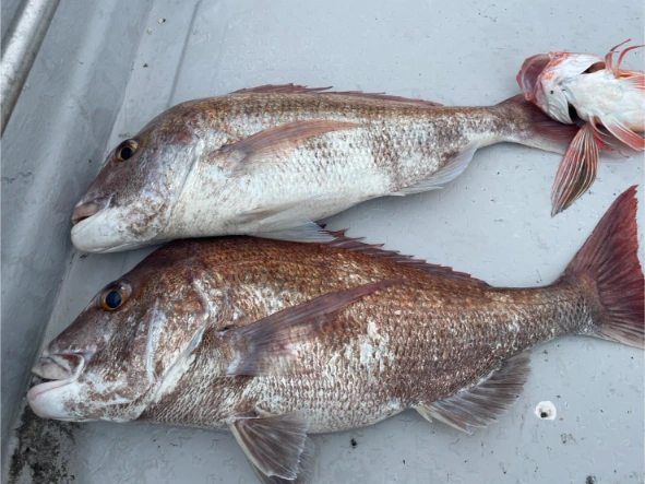 荒れ気味の海の中で見事に70cm級の大鯛を2匹!